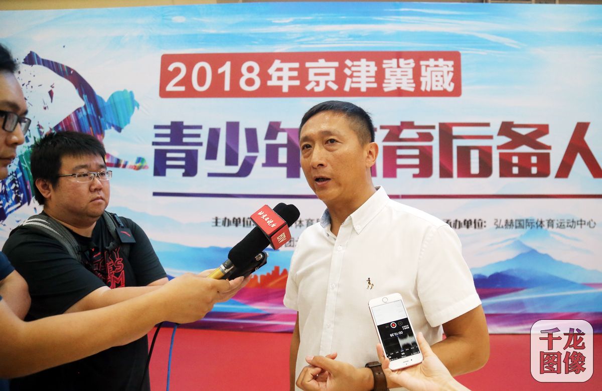 8月19日,2018年京津冀藏青少年体育后备人才集训营暨嘉年华活动在京开幕。来自北京、天津、河北省以及西藏自治区拉萨市的700多名运动员同吃、同住、同训、同乐,将共同度过为期两周的快乐时光。活动将持续到8月30日结束。图为北京市体育局青少处处长苏峻接受记者采访介绍活动的安排。千龙网记者 戚连民摄