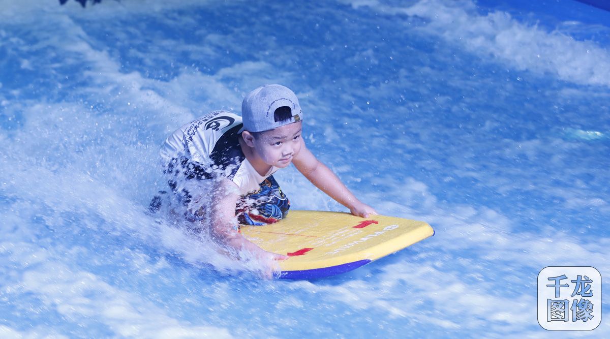 滑板冲浪是一种在冲浪模拟器上进行的极具参与性的时尚极限运动,它能让参与者真实接触到水和浪花,感受到在大海冲浪时的刺激与兴奋,同时又是一项特别安全的极限运动。冲浪极富挑战性,并形成了一种新的文化趋势,吸引了越来越多的年轻人参与其中。