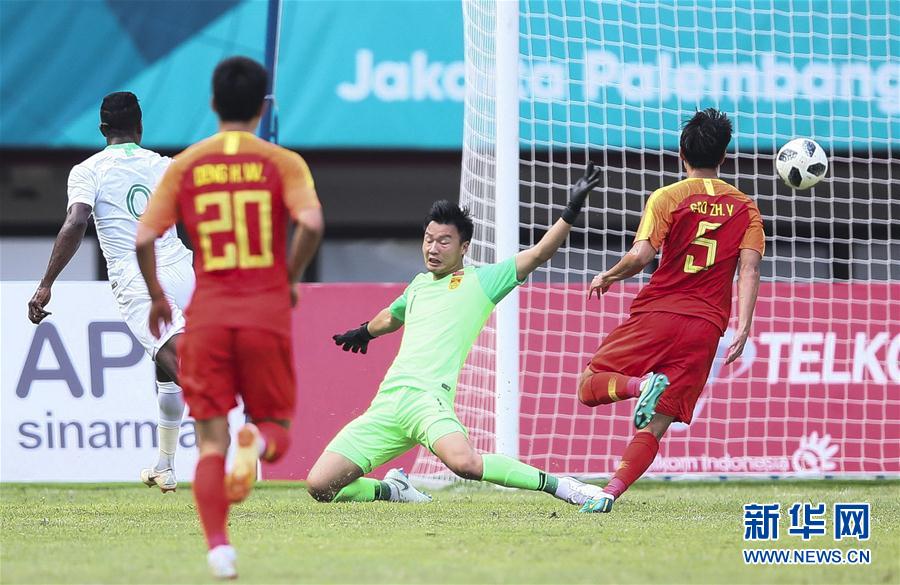 8月24日,沙特队攻进第一球。 当日,在第18届亚运会足球男子16进8的比赛中,中国以3比4不敌沙特队,无缘八强。 新华社记者兰红光摄