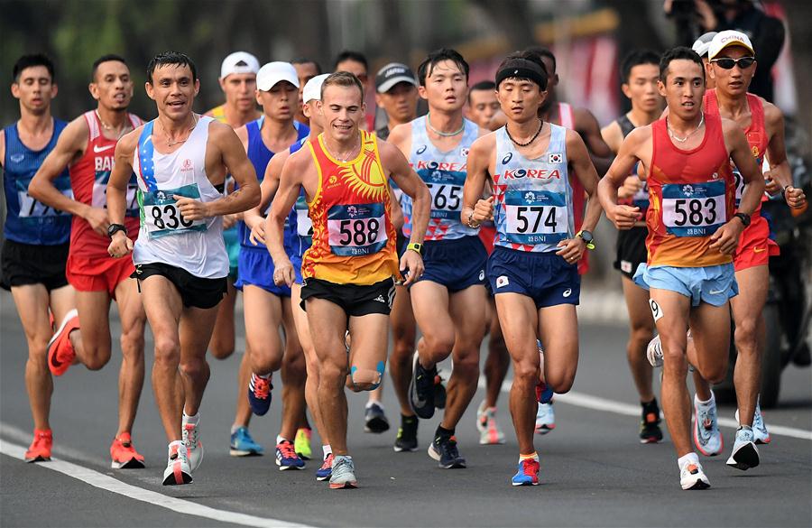 第18届亚运会田径男子马拉松在印度尼西亚雅加达举行(8)