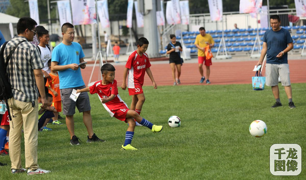 8月26日,2018年北京市民快乐足球季暨北京市市级社会足球活动启动仪式在国家奥林匹克体育中心举行。图为小球员及家长参与趣味十足的足球挑战项目。千龙网发 北京市足球运动协会供图