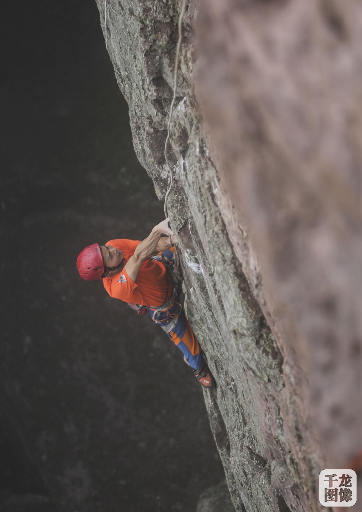 8月25—26日,2018中国攀岩自然岩壁系列赛(神仙居站)在浙江省台州市仙居县神仙居景区举行,共有来自全国各地的118名攀岩运动员及爱好者参加比赛。图为运动员在比赛中。千龙网发 中国登山协会供图