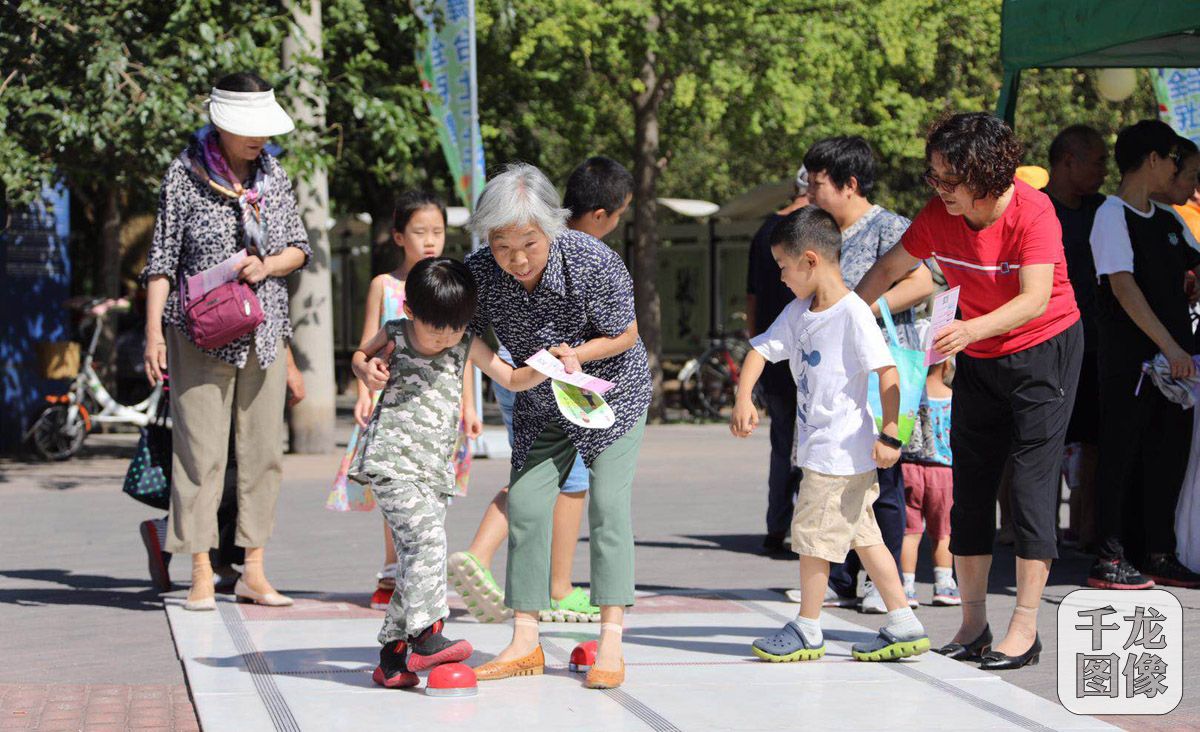 8月29日,2018北京市全民健身与营养社区行(南区)活动8月29日在马家堡街道嘉园三里社区举行。图为活动现场市民体验冰蹴球。千龙网发 胡宗洋摄
