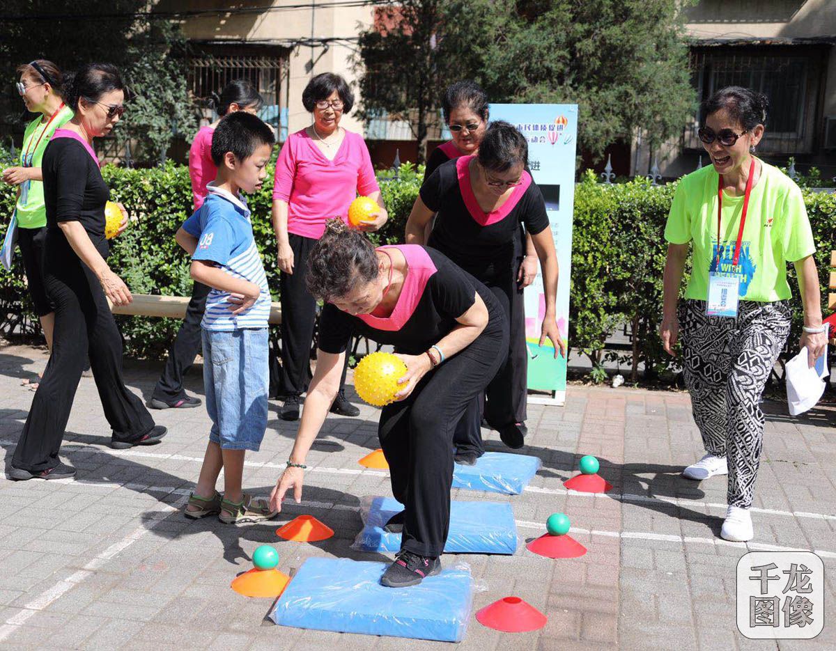 8月31日,2018北京市民体质促进趣味运动会在劲松街道农光东里社区广场举行。图为社区居民进行体质促进项目比赛。千龙网发 胡宗洋摄