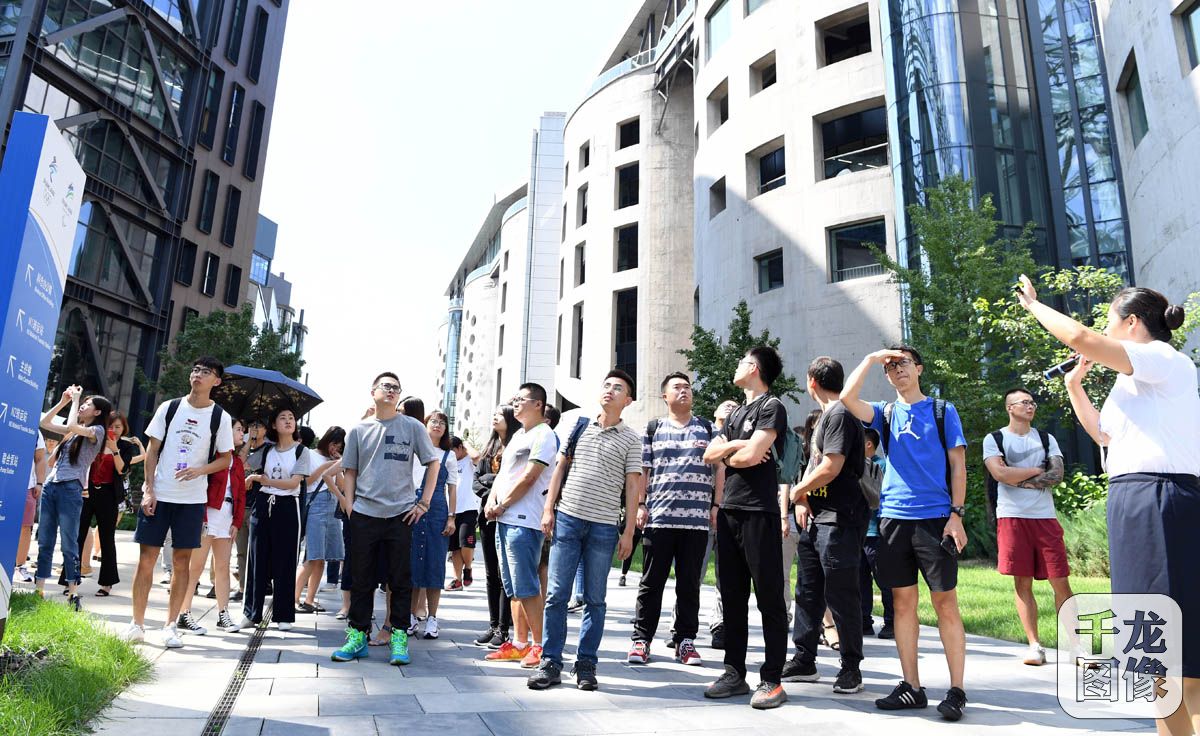 8月31日,由北京市互联网信息办公室会同北京冬奥组委新闻宣传部联合举办的网络媒体从业人员“走进冬奥”活动在北京冬奥组委首钢办公区举行。图为培训班学员参观冬奥组委办公区。千龙网发 崔峻摄