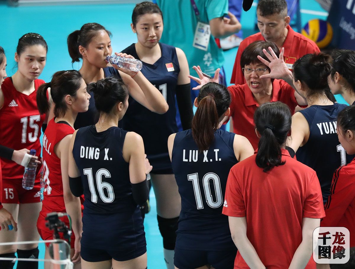 9月1日,雅加达亚运会女排决赛上演,中国女排直落三局轻松战胜泰国队获得冠军。图为郎平指挥比赛。千龙网发 萧峰摄