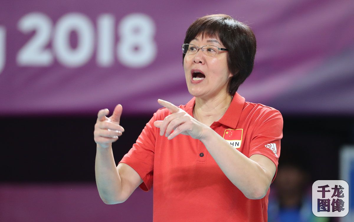 9月1日,雅加达亚运会女排决赛上演,中国女排直落三局轻松战胜泰国队获得冠军。图为主教练郎平指挥比赛。千龙网发 萧峰摄