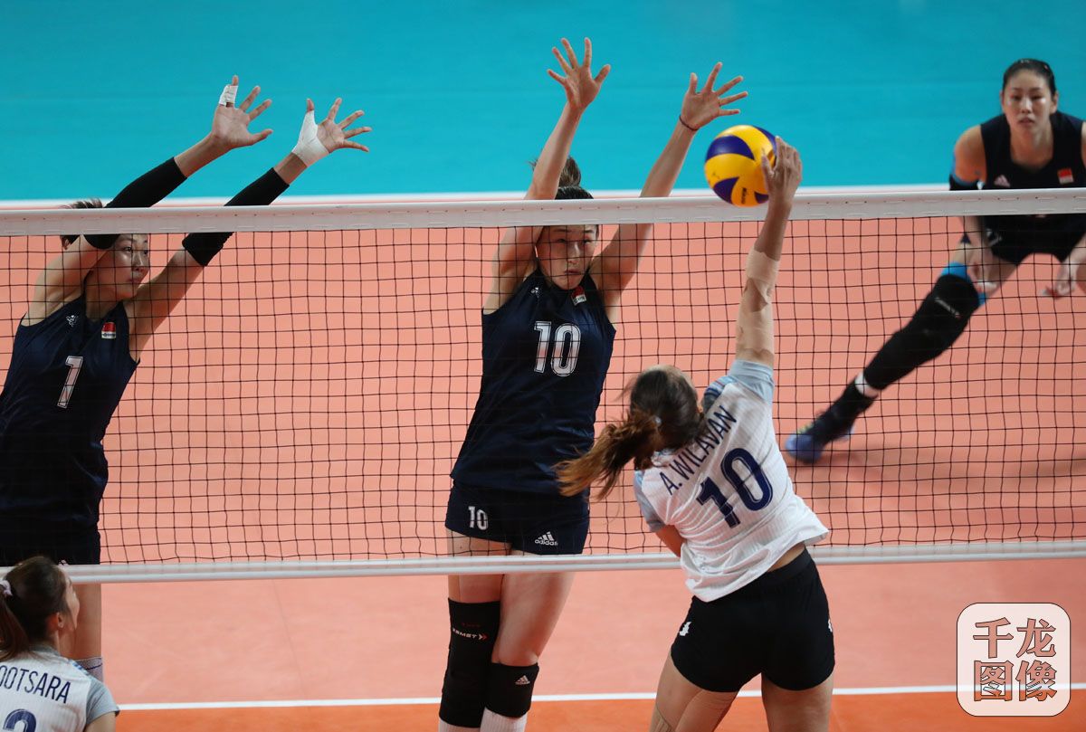 9月1日,雅加达亚运会女排决赛上演,中国女排直落三局轻松战胜泰国队获得冠军。图为本场比赛精彩瞬间。千龙网发 萧峰摄