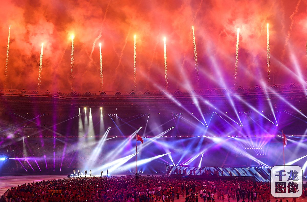 9月2日,第十八届亚运会在印度尼西亚首都雅加达闭幕,下届赛事将于2022年在中国杭州举行。图为闭幕式上的“杭州时间”文艺演出。千龙网发 萧峰摄