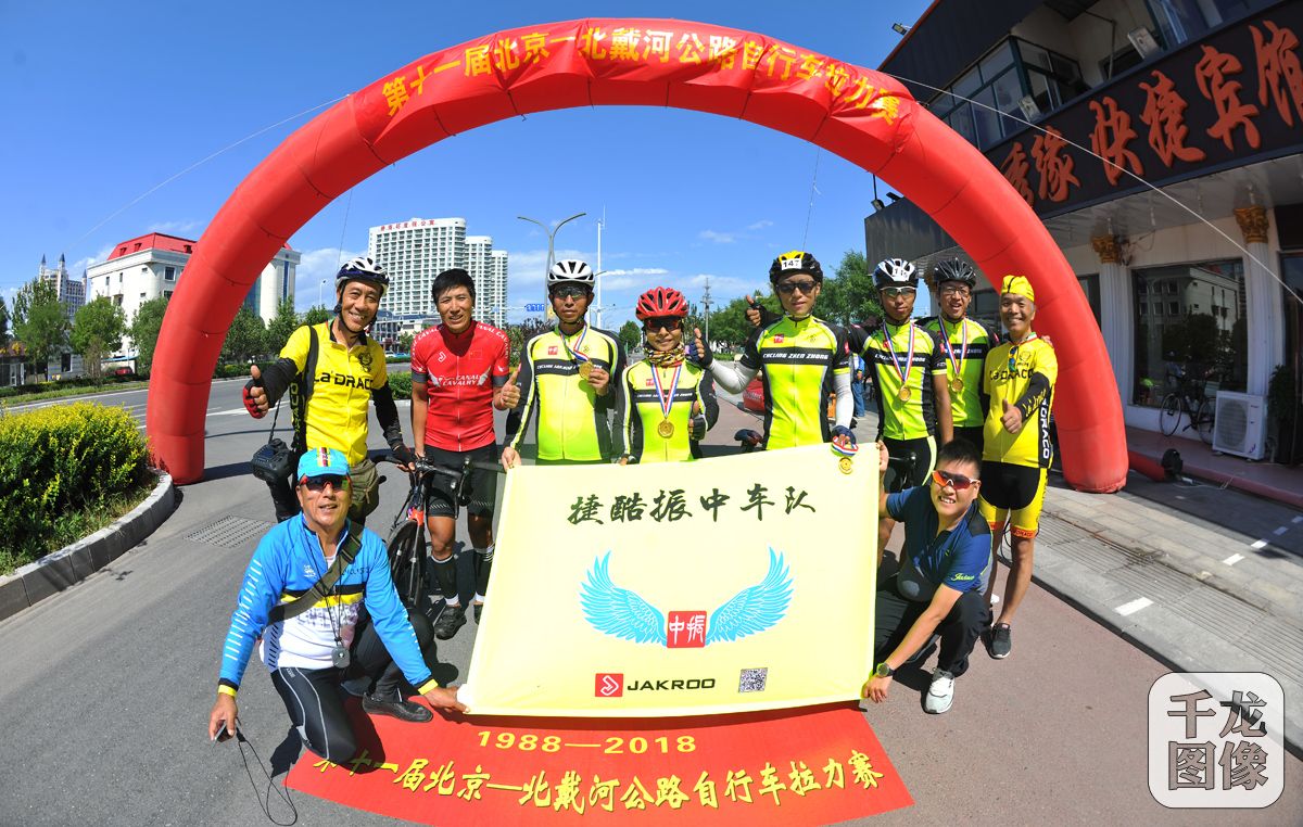 第十一届北京-北戴河公路自行车拉力赛9月8日在北京市通州区北关发枪,选手们经过近8个小时的长途骑行,最终李高明用时7小时20分、王国利用时7小时28分40秒、王艳春用时7小时46分48秒分获男子青年组、中年组和女子组冠军。图为出发前车队合影。千龙网发 崇惠友 张铁环 党伟光供图