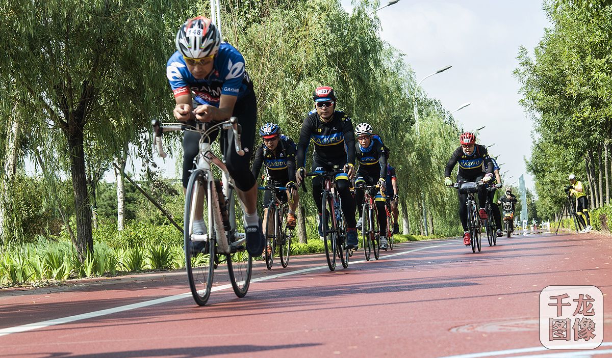 第十一届北京-北戴河公路自行车拉力赛9月8日在北京市通州区北关发枪,选手们经过近8个小时的长途骑行,最终李高明用时7小时20分、王国利用时7小时28分40秒、王艳春用时7小时46分48秒分获男子青年组、中年组和女子组冠军。图为全体队员在骑行中。千龙网发 崇惠友 张铁环 党伟光供图