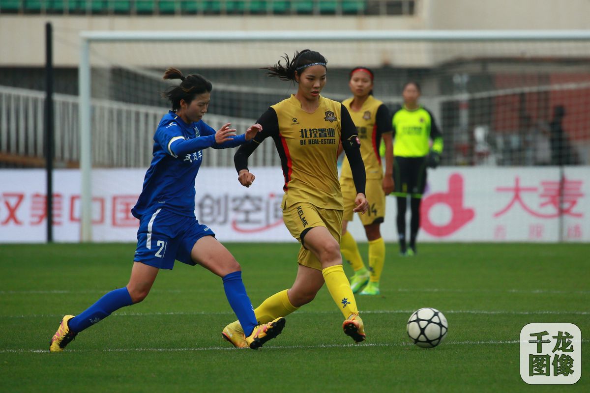 9月12日,2018中国足球协会杯(女子)四分之一决赛第二回合比赛在北京先农坛体育场打响,北京北控置业女足主场迎战武汉江大女足,经过90分钟激战,双方0-0握手言和。北京北控置业女足以两轮总比分5-1晋级半决赛。图为比赛精彩瞬间。千龙网发 高宇摄
