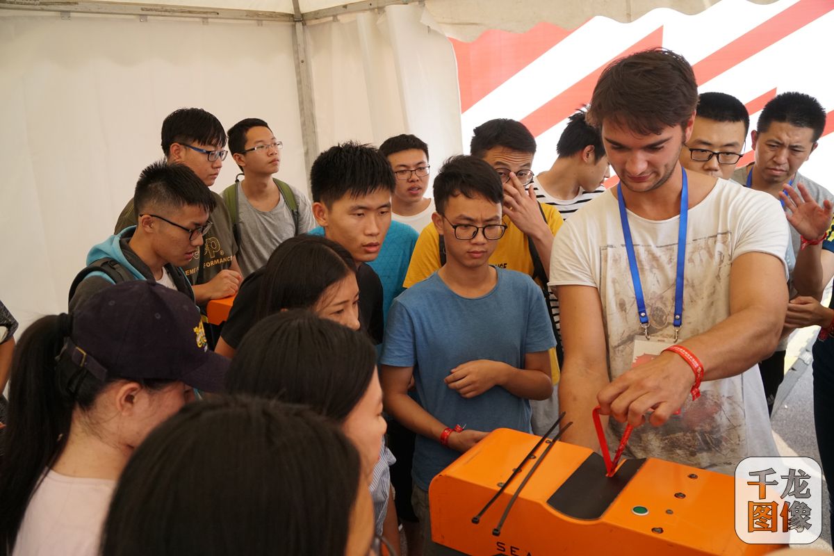 9月13日,2018北京马拉松博览会在北京农业展览馆开幕。图为博览会开幕前,荷兰专家正在培训工作人员如果正确使用手环佩戴设备。千龙网发 北马组委会供图