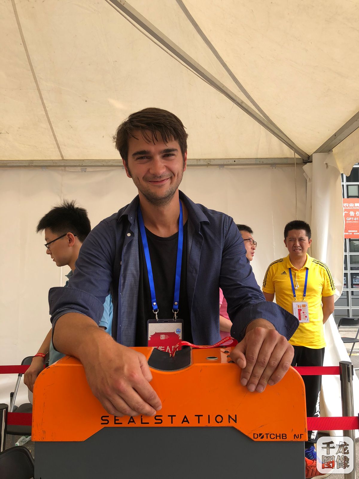 9月13日,2018北京马拉松博览会在北京农业展览馆开幕。图为荷兰专家在现场保证手环佩戴设备正常工作。千龙网发 北马组委会供图