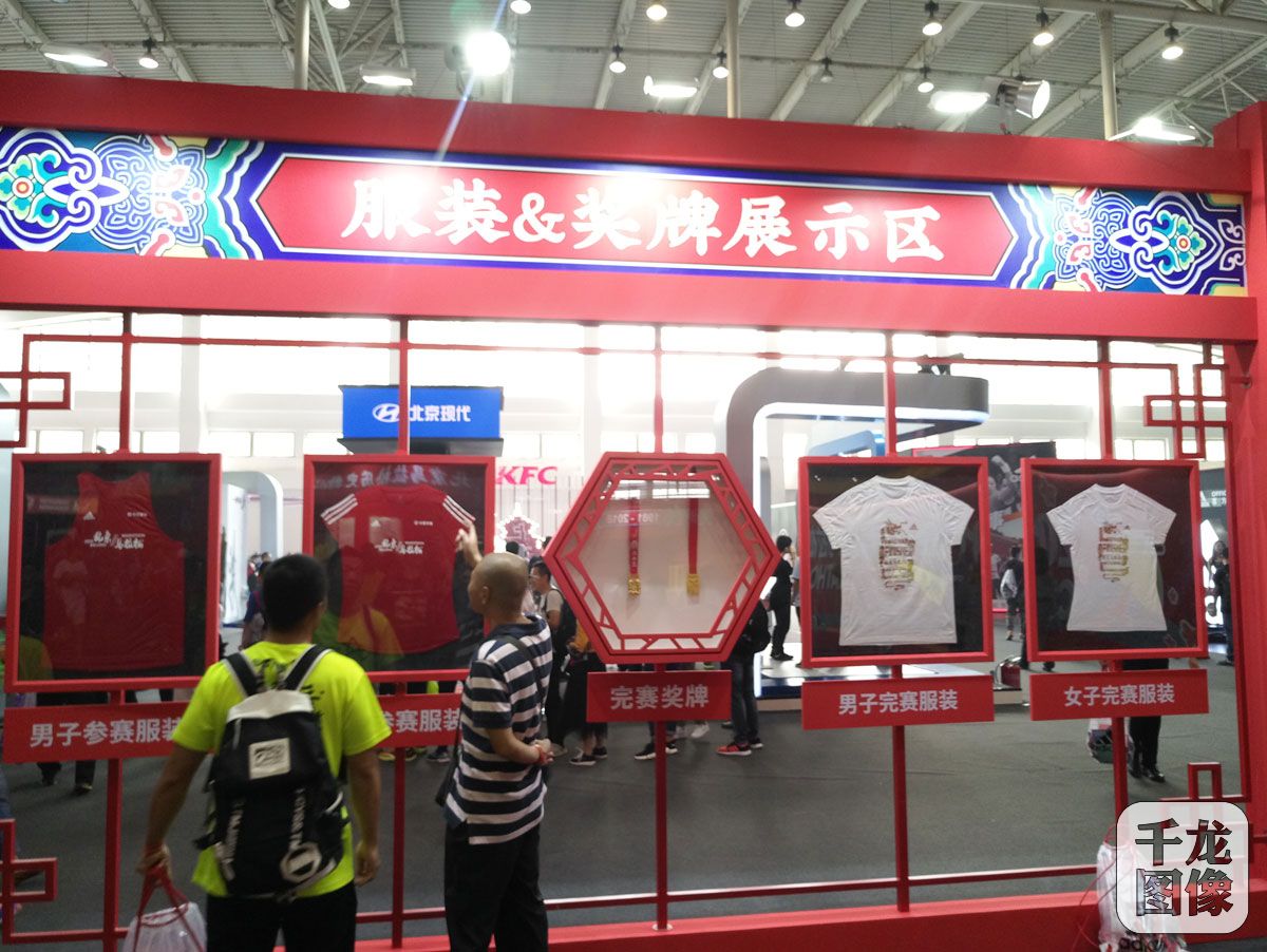 9月13日,2018北京马拉松博览会在北京农业展览馆开幕。图为参赛选手正在欣赏2018年的参赛服装。千龙网记者 黄业摄