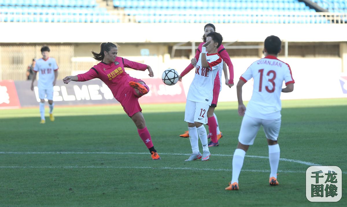 9月23日,2018年女超联赛第11轮北京北控置业女足主场对阵大连权健女足,经过90分钟激烈比赛。最终,北京北控置业女足1:2不敌大连权健。图为本场比赛精彩瞬间。千龙网发 戚连民 高宇摄