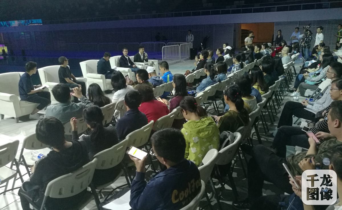 9月26日,艺术家卢克·杰拉姆在水立方文化沙龙活动上介绍创作“超级月亮”的初衷。图为沙龙现场。千龙网记者 戚连民摄