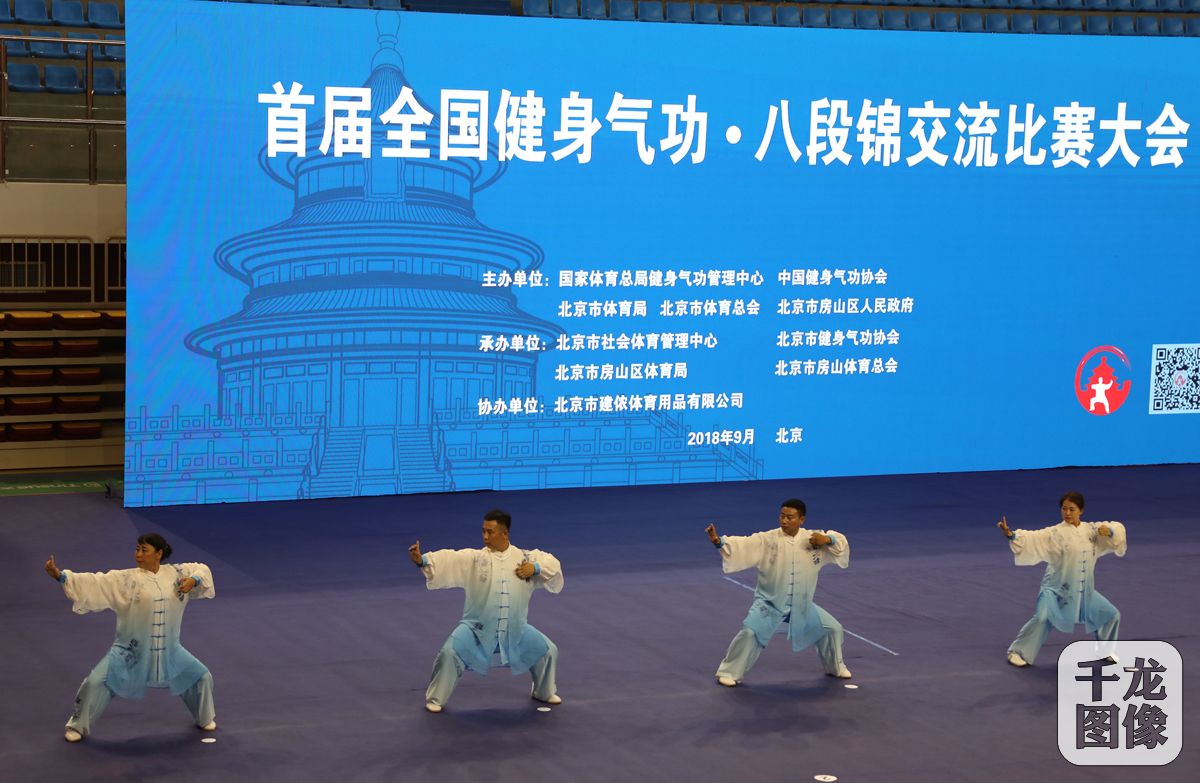 9月27日,首届全国健身气功·八段锦交流比赛大会在北京市房山区良乡体育中心体育馆举行。图为参赛爱好者在比赛中千龙网发 北京市社会体育管理中心供图