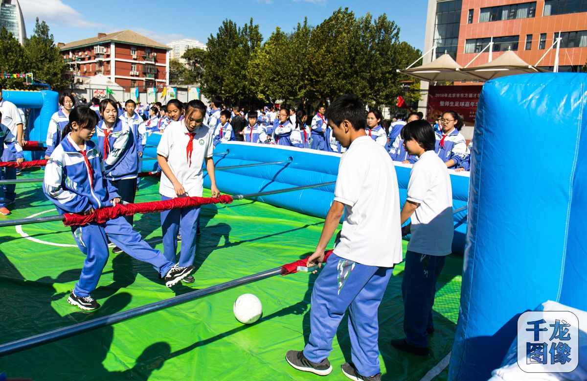 9月30日,北京市东方德才学校全国足球特色校启动仪式暨足球嘉年华主题活动举行,活动通过足球大闯关、桌上足球、足球飞镖、3v3足球争霸赛、有奖知识问答等活动,吸引了全校师生的踊跃参与。图为活动现场师生热情高涨,在一项项趣味活动中感受着足球文化的浸润,享受着足球运动带来的快乐。千龙网发 主办方供图