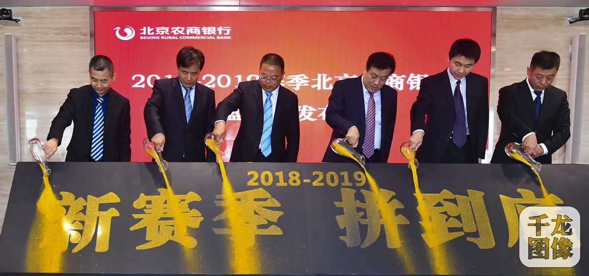 10月10日,北京农商银行篮球队在北京农商银行总部召开了2018-2019赛季新闻发布会,经过一个休赛期的调整和补充,全新的阵容也第一次正式亮相。图为与会嘉宾揭晓新赛季口号。千龙网发 胡科摄