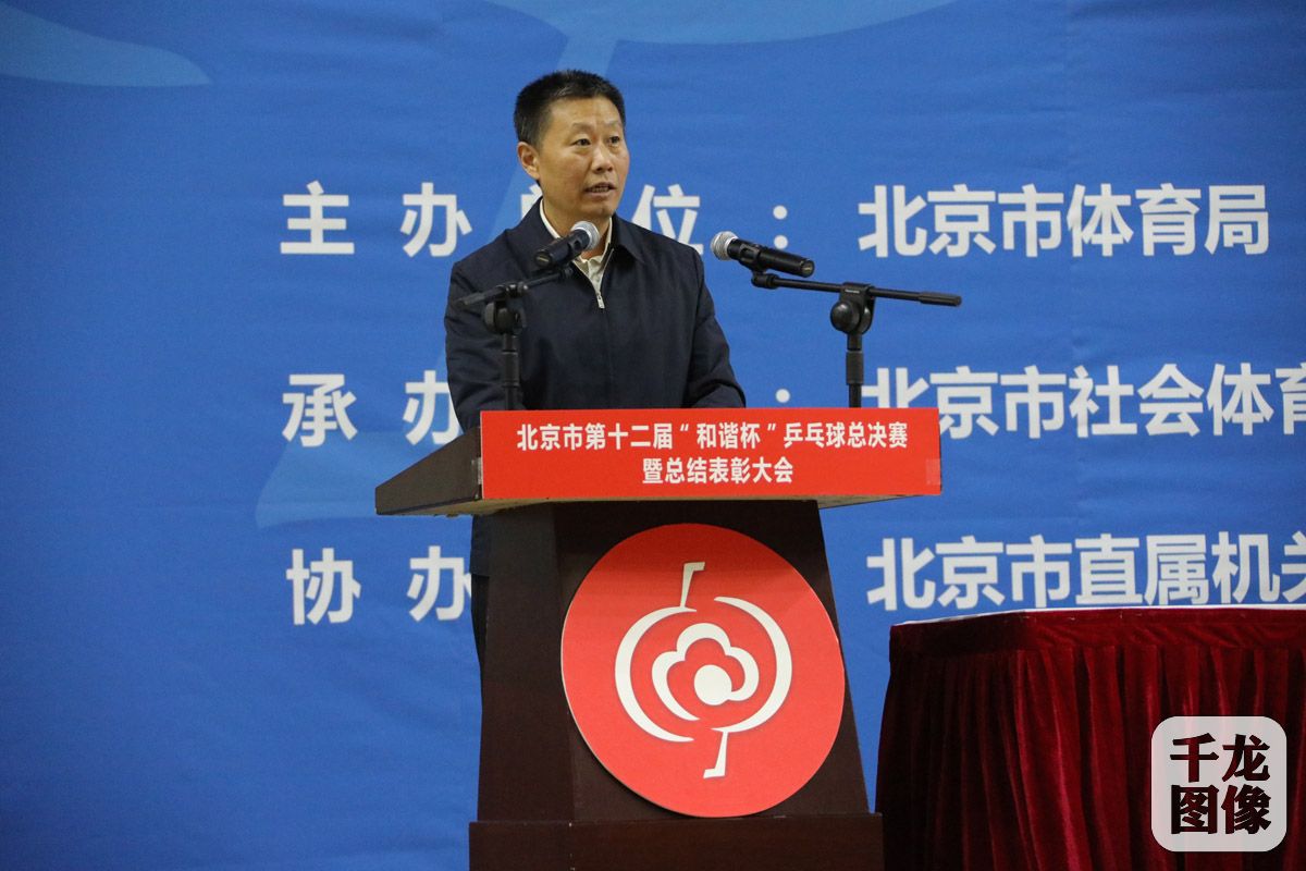 10月13日,北京市第十二届“和谐杯”乒乓球比赛总决赛在昌平体育馆进行,来自市直机关、市总工会、市教委、市大学生体协、市乒协,16个区和亦庄、燕山地区以及津冀两地的乒乓球高手共计184支代表队近千名运动员进行角逐。图为北京市体育局局长赵文进行赛事总结。千龙网发 杨鑫 胡宗洋摄