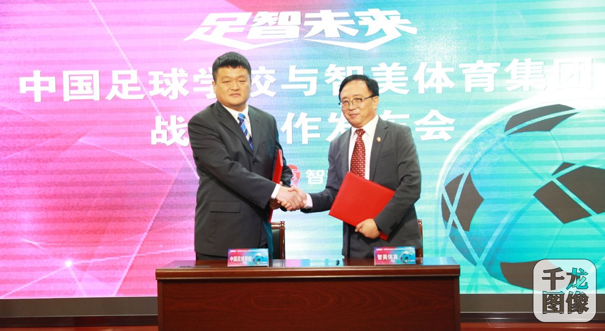 10月15日,以“足·智未来”为主题的国家体育总局秦皇岛训练基地与智美体育集团战略合作发布会在京举行。图为签约现场。千龙网发 主办方供图