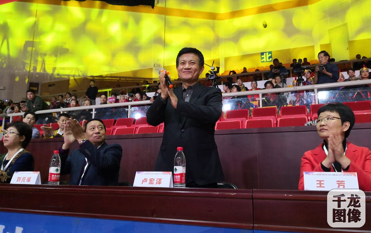 10月16日,第五届北京市广场舞大赛总决赛在地坛体育馆举行。北京各区分站赛选拔的高水平广场舞代表队和北京市直属机关工会、北京市妇联、市民族体协以及全国广场舞推广委员会选派的共计46支队伍,800余名运动员参加了本次决赛。图为北京市体育局副巡视员卢宏泽宣布比赛开幕。千龙网记者 戚连民摄