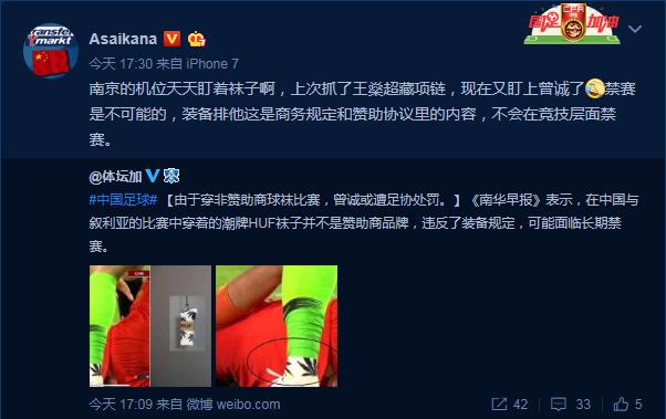 对于曾诚可能遭至的处罚,德国转会市场中国管理员朱艺表示不可能:“禁赛是不可能的,装备排他这是商务规定和赞助协议里的内容,不会在竞技层面禁赛。”
