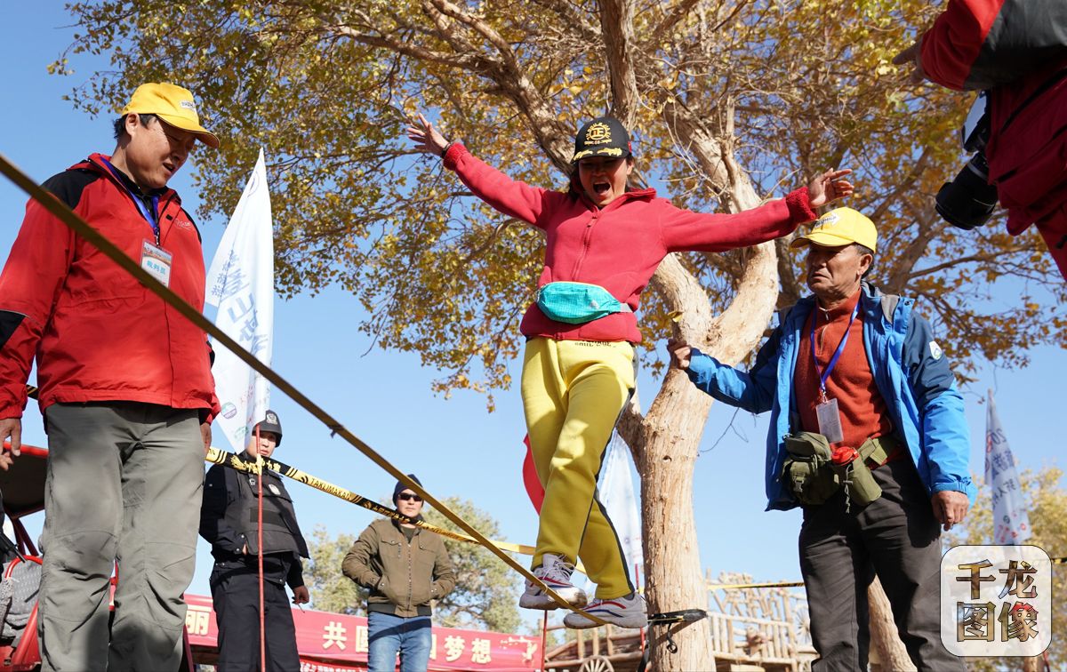10月20日,2018中国体育旅游露营大会在新疆尉犁县国家4A级风景区罗布人村寨举行。为期两天的大会吸引了来自全国各地近千名户外爱好者参加。图为走扁带大赛。千龙网发 萧峰摄