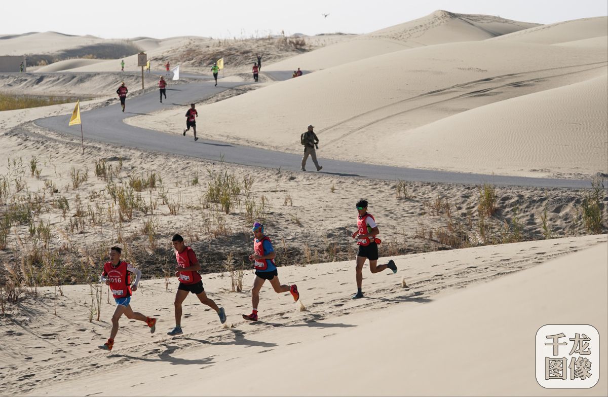 10月20日,2018中国体育旅游露营大会在新疆尉犁县国家4A级风景区罗布人村寨举行。为期两天的大会吸引了来自全国各地近千名户外爱好者参加。图为沙漠半程马拉松挑战赛。千龙网发 萧峰摄