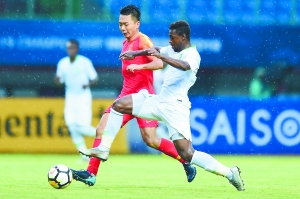 中国队球员温家宝(左)在与沙特队比赛中突破。 新华社记者 杜 宇摄