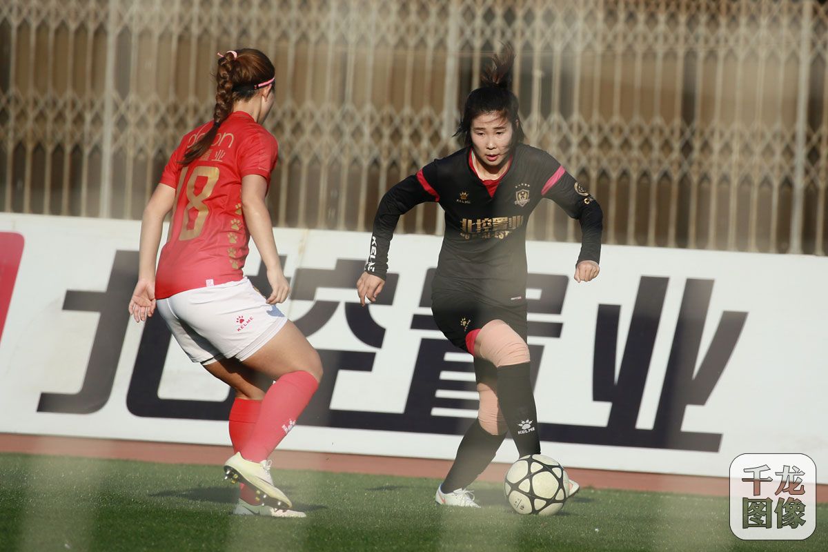 10月24日,2018中国足协杯赛(女子)争夺第三名首回合比赛在先农坛体育场举行,北京北控置业女足主场2-2战平长春农商银行女足。图为比赛精彩瞬间。千龙网发 高宇摄