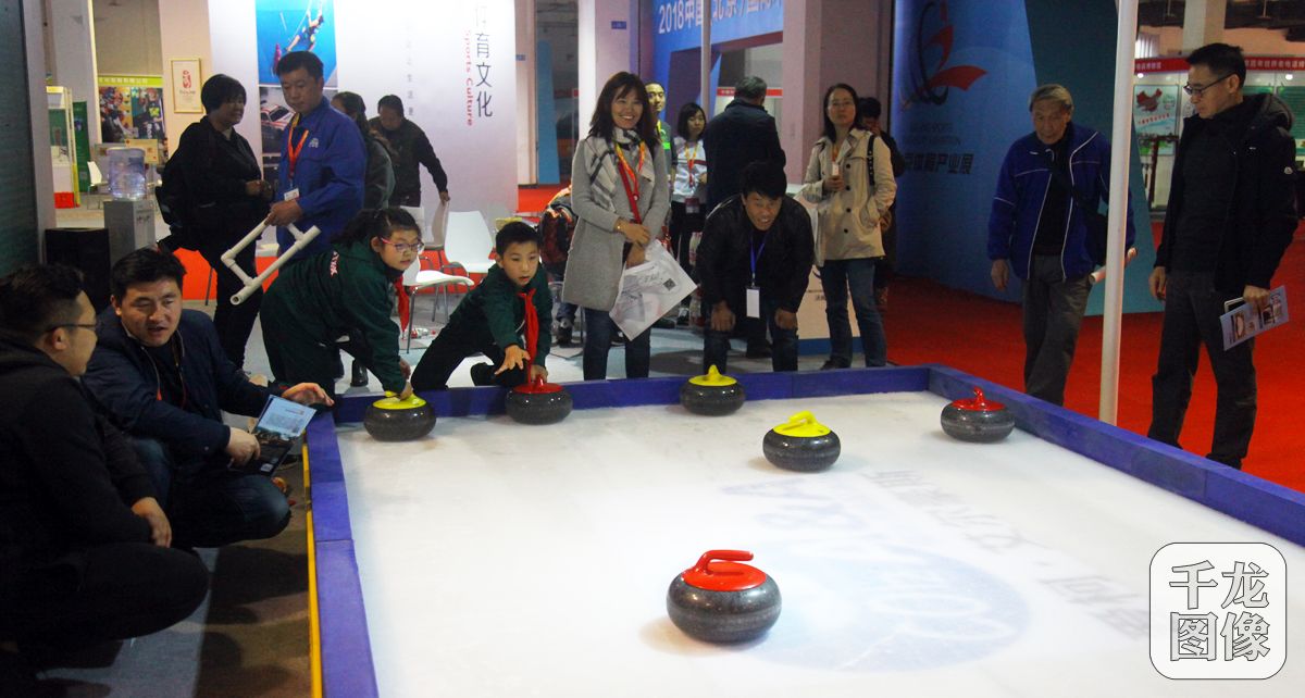 10月25日,2018中国(北京)国际体育产业展在中国国际展览中心举行,在冰雪展区艾尔豪斯的真冰赛道结合冰壶运动共同展出,让广大参观者能体验到真实的冰雪感受,本次艾尔豪斯推出的模块化装配冰场成为北京文博会上展示中国创造的新亮点。图为两名小学生在展区体验冰壶运动。千龙网记者 戚连民摄