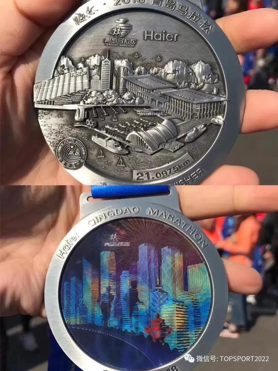 青岛马拉松的赛道很美,堪称中国最美滨海赛道,比赛路线途经中山公园、栈桥、八大关风景区、青岛奥林匹克帆船中心、青岛国际会议中心等多个青岛经典地标,这是青岛送给每一位跑者的珍贵礼物。青岛的市民很热情,好客山东,最美青岛。青岛人热情直率、真诚善良,“加油!加油!青马加油!”,在比赛过程中持续不断。青马的奖牌设计也炫酷无比,激光镭射的可变图案,让我眼睛一亮。奖牌上集中体现了青岛的现代化进程。经过奥运会、全运会、上合组织青岛峰会的洗礼,青岛马拉松必将成为青岛走向世界的新名片。