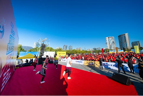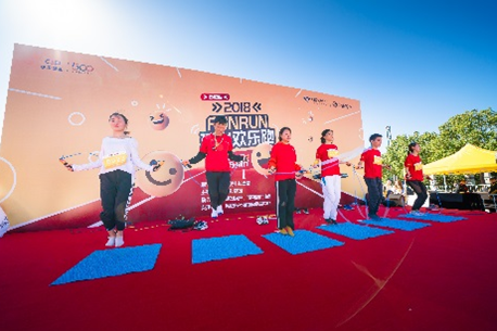 开跑前,选手们在热力四射的领操团带领下开启赛前热身,现场气氛瞬间热烈起来,大家随着教练的节奏舞动起来,准备以最好的状态迎接着最欢乐的5KM。