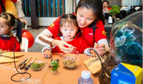 开跑前一天的27号,建发欢乐跑亲子训练营率先在建发雍龙府展开。伴着万里晴空,专业教练给孩子们讲解了关于跑步和热身的专业知识;充分热身过后,两项刺激的游戏随之展开:考验反应的踩气球游戏和考验默契的双人运球挑战让家长和孩子培养了彼此的默契与信任;最后家长和孩子则一起开动脑筋制作了各式奇妙的DIY 盆景。