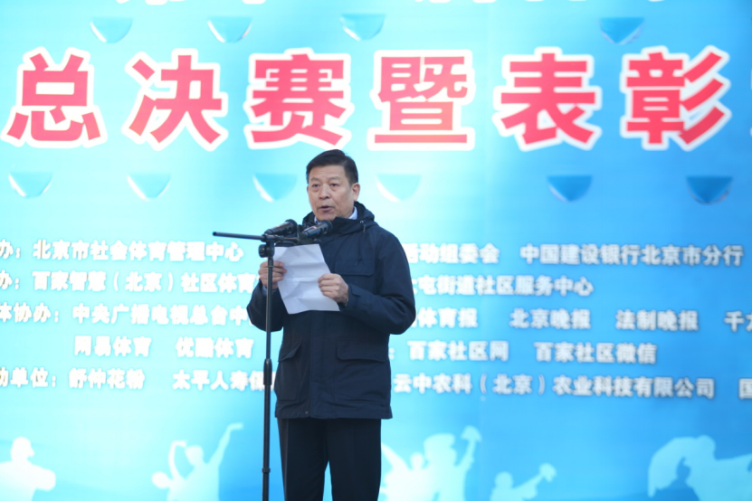 在总决赛后举行的是“建设银行杯”第十一届百家社区健身才艺大赛表彰大会,由百家社区组委会执行主任薛雨宁致辞。薛雨宁先生对此次总决赛中各参赛队伍展现出来的团队协作、精神面貌及健身氛围做出了高度评价。并表示组委会今后将通过开展形式多样的群众性体育健身活动,在推广科学健身理念的同时,引导广大社区居民积极地参与到健身活动中来,为我市贯彻落实全民健身国家战略、为北京市体育事业的蓬勃贡献力量。