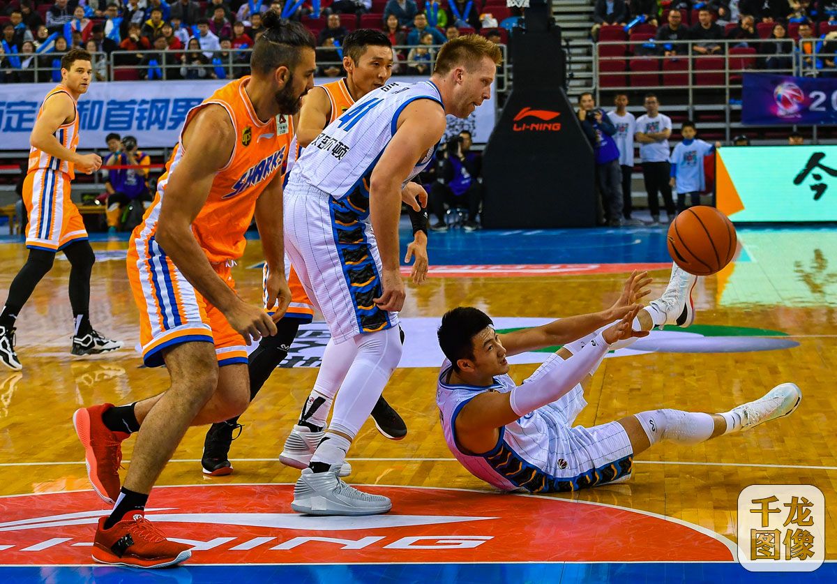 男篮主场迎战上海哔哩哔哩。以113-118不敌对手。图为本场比赛精彩瞬间。千龙网发 胡科摄