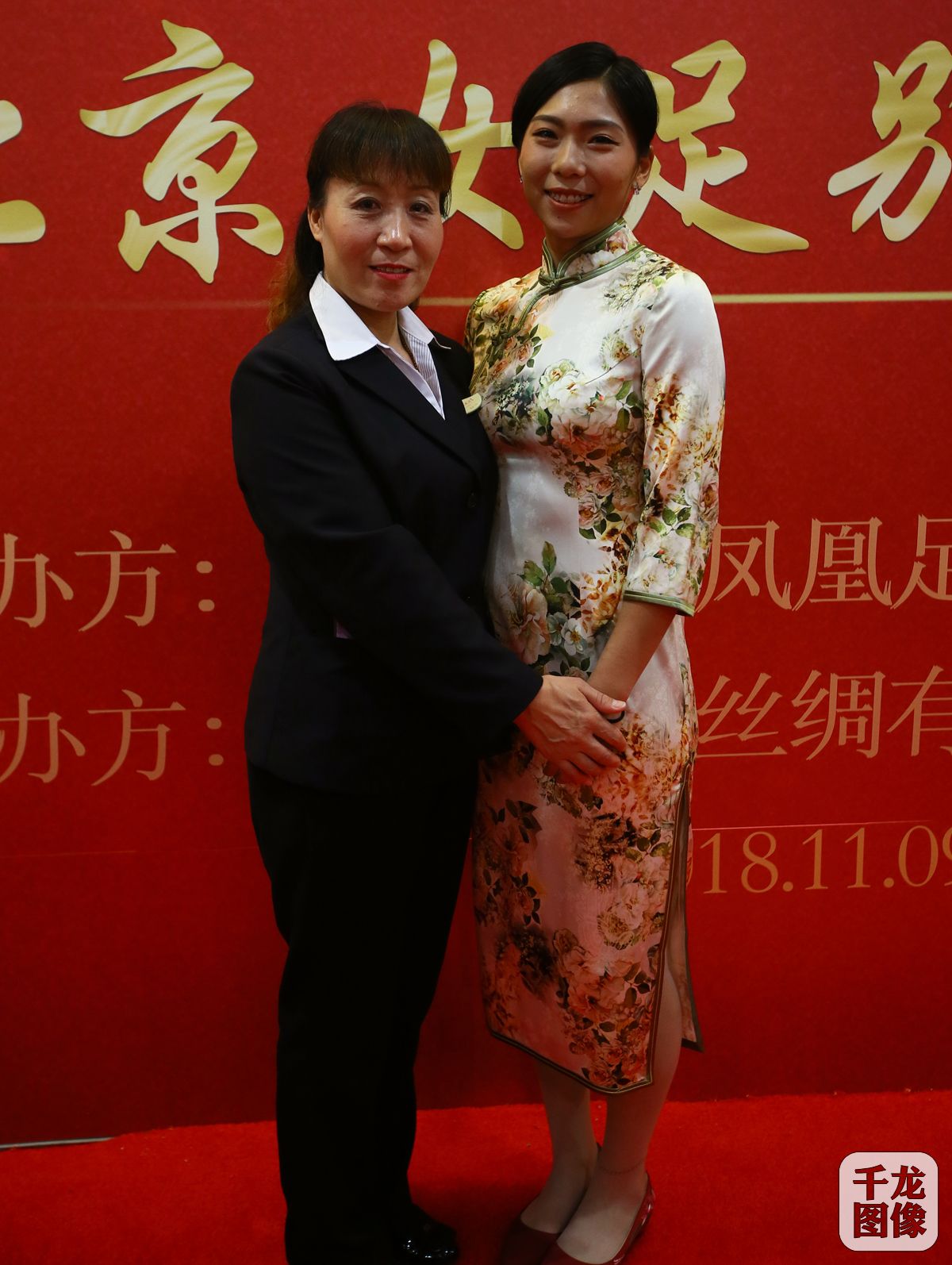 11月9日,北控凤凰女足俱乐部与国粹丝绸共同举办“铿锵玫瑰国粹传情”的主题活动在王府井国粹丝绸店举行。图为北控凤凰足球俱乐部女足队员古雅沙和国粹丝绸工作人员合影。千龙网记者 戚连民摄