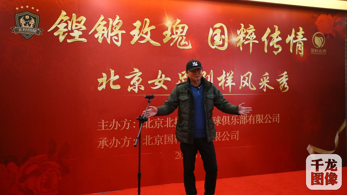 11月9日,北控凤凰女足俱乐部与国粹丝绸共同举办“铿锵玫瑰国粹传情”的主题活动在王府井国粹丝绸店举行。图为北控凤凰足球俱乐部总教练于允致辞。千龙网记者 戚连民摄