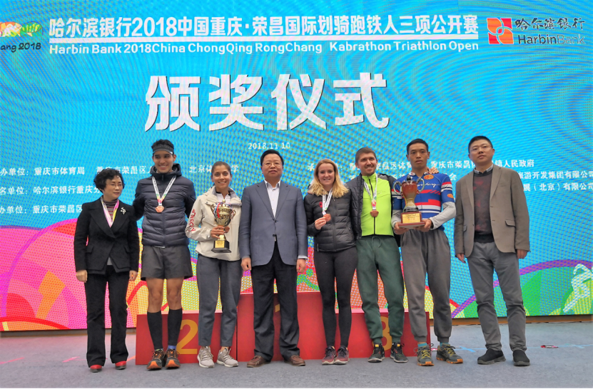 哈尔滨银行2018中国重庆·荣昌国际划骑跑铁人三项公开赛由重庆市体育局、重庆市荣昌区人民政府和北京体育大学共同主办,重庆市荣昌区体育局、北京体育大学产业管理集团、重庆市荣昌区万灵镇人民政府、重庆市荣昌区旅游景区管理委会、重庆市万灵山旅游开发集团有限公司和北体大贯通体育发展(北京)有限公司共同承办,凯步锐石国际体育(北京)有限公司独家运营,在比赛中运动员们要挑战自行车68公里,皮划艇9公里,越野跑15公里,比赛路线总长92公里。比赛开幕式在有着千年历史的全国特色景观旅游名镇、中国历史文化名镇、国家4A级旅游景区万灵古镇内举行。此外,本次比赛除了最具挑战性的划骑跑三项外,还有男女山地自行车、百适乐男女桨板(SUP)公开组等,整个赛事吸引了13个国家和地区的700余名专业、户外选手参赛。