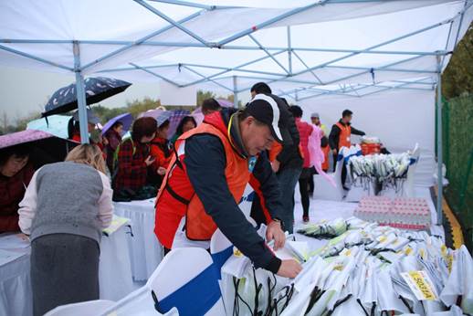 冬之雨,奏起的收官之音,云层笼罩,却丝毫未影响300余名专业跑者雀跃而又燃烧的心。为保证比赛有序进行,赛事组委会在领物区、储存区、更衣区、出发区、补给点以及赛道沿途等等地方安排了近百名名志愿者,全方位地提供服务。