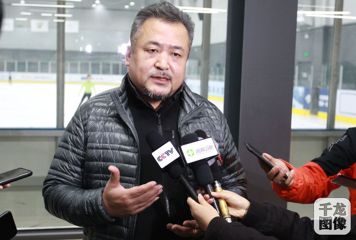 11月13日,记者探营北京市花样滑冰队,目睹了2018年平昌冬奥会花样滑冰双人滑冠军阿里尤娜·萨维申科对队员技术指导的全过程。图为世纪星滑冰俱乐部董事长范军接受采访。千龙网发 北京市体育局供图
