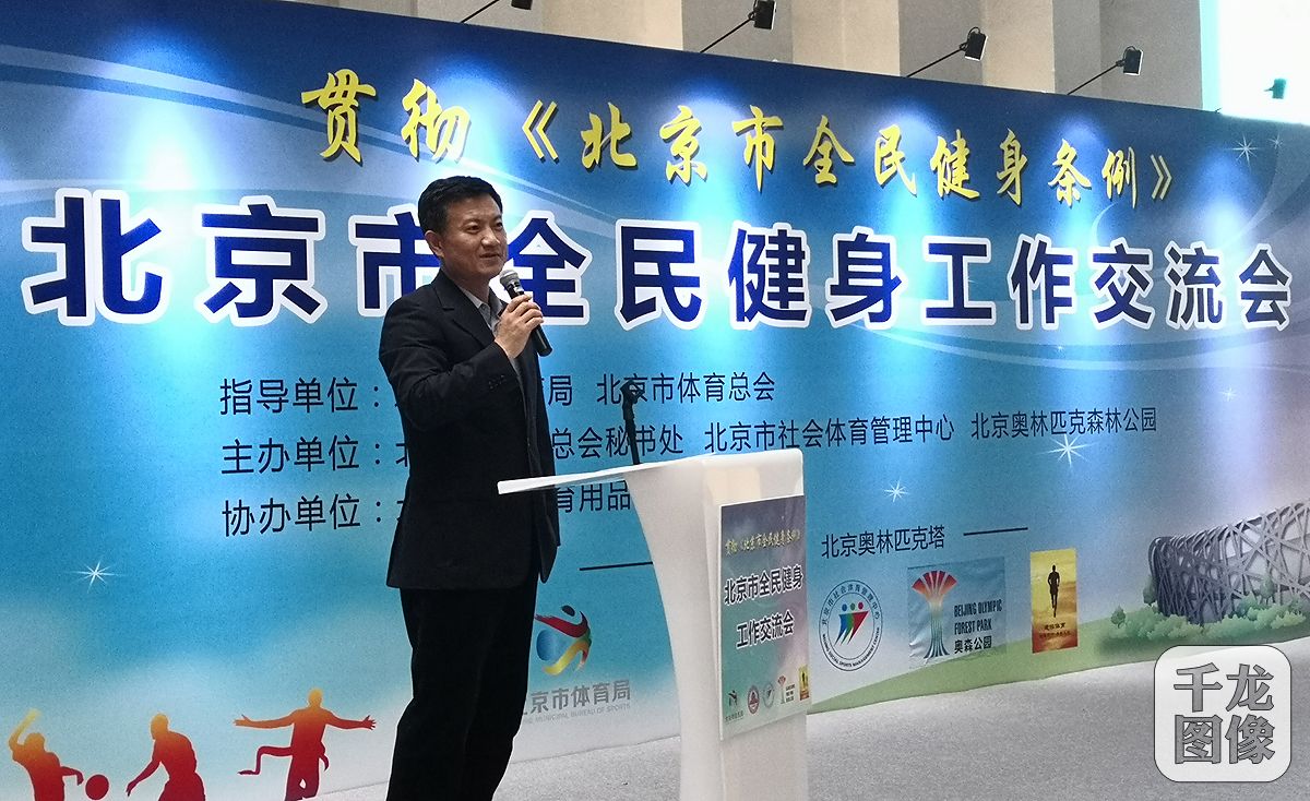 11月14日,2018年北京市全民健身工作交流会在北京奥林匹克塔举行,市体育局群体处史江平处长就2018年本市全民健身工作开展情况进行介绍。图为市体育局副巡视员卢宏泽总结2018年本市全民健身工作取得的成绩。千龙网记者 戚连民摄
