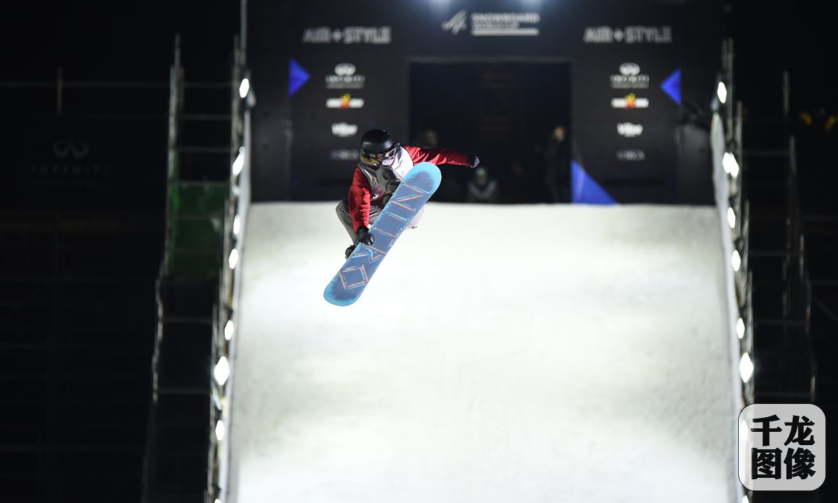 2017年11月25日,2017沸雪北京国际雪联单板滑雪大跳台世界杯在工人体育场落下帷幕,来自加拿大的马克·麦克莫里斯和来自奥地利的安娜·加塞尔,分别获得男、女组冠军,两人各获得1000分的奥运积分。图为本次比赛精彩瞬间。千龙网记者 戚连民摄