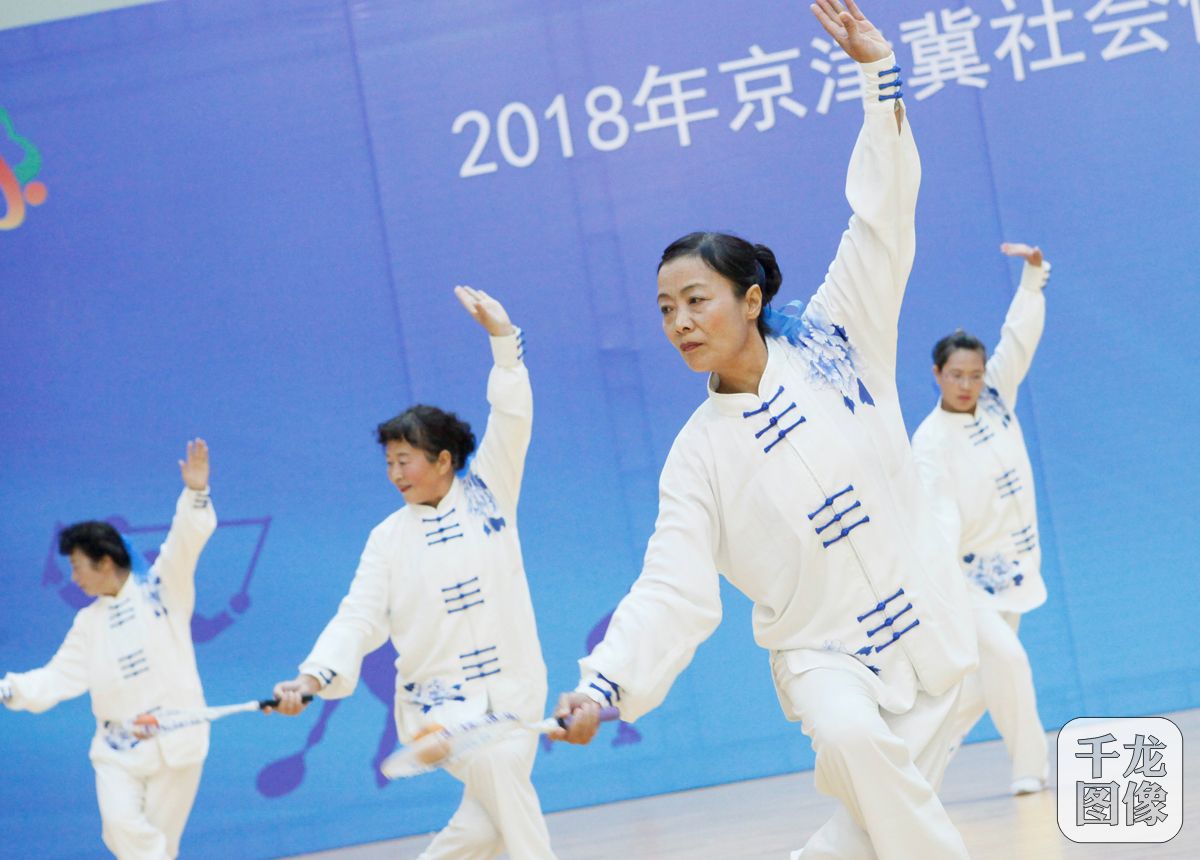 11月16日,2018年京津冀社会体育指导员交流展示比赛昌平分站赛在北京住总京体健身中心举行。来自北京市昌平区、怀柔区、平谷区、密云区、延庆区、天津市、河北省等地区的50余支代表队、1000余人参加比赛。图为交流展示活动现场。千龙网发 主办方供图
