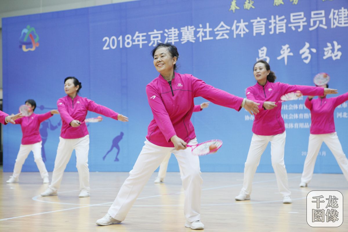 11月16日,2018年京津冀社会体育指导员交流展示比赛昌平分站赛在北京住总京体健身中心举行。来自北京市昌平区、怀柔区、平谷区、密云区、延庆区、天津市、河北省等地区的50余支代表队、1000余人参加比赛。图为交流展示活动现场。千龙网发 主办方供图