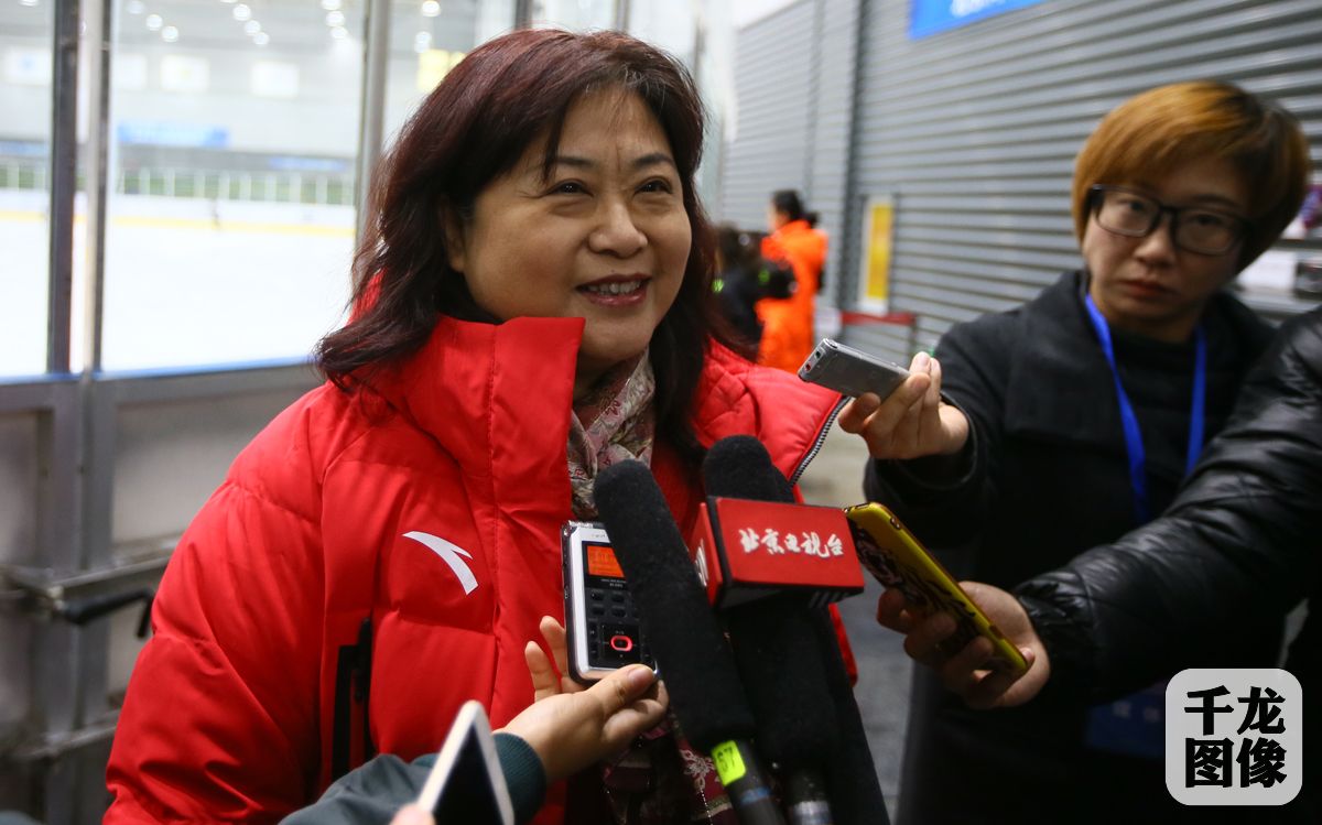11月17日,北京市第一届冬季运动会竞技组花样滑冰预选赛在世纪星国际冰雪体育中心开赛。来自全市11个区的108名女子花样滑冰小运动员将参加17日短节目和18日自由滑的比赛,为40个决赛名额展开激烈争夺。图为北京市体育局青少处副处长朱虹接受记者采访。千龙网记者 戚连民摄