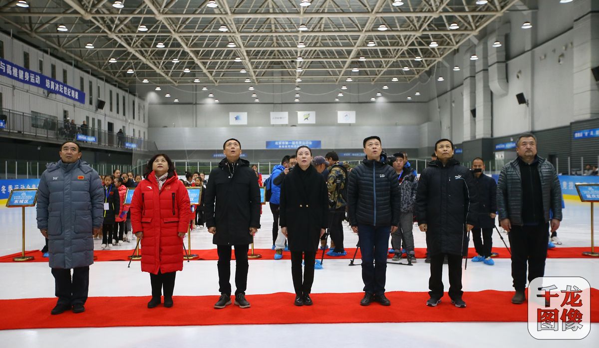11月17日,北京市第一届冬季运动会竞技组花样滑冰预选赛在世纪星国际冰雪体育中心开赛。来自全市11个区的108名女子花样滑冰小运动员将参加17日短节目和18日自由滑的比赛,为40个决赛名额展开激烈争夺。图为市体育局副局长张霞(中)参加开幕式并宣布比赛开始。千龙网记者 戚连民摄