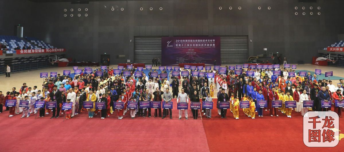 11月17日,2018年第四届北京国际武术文化节暨第十二届北京国际武术邀请赛开幕,共吸引上千名运动员报名参赛。图为开幕式现场。千龙网发 主办方供图
